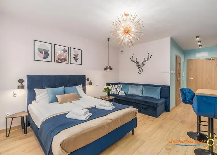 Apartament Kolobrzeski Relax Kołobrzeg med 1 sovrum, som ligger i Kołobrzeg cirka 20 minuters gångavstånd från Stefan Żeromski Park, erbjuder spafaciliteter som bastu. 2 km från den 31 m² stora lägenheten hittar du Kołobrzeg Pier.